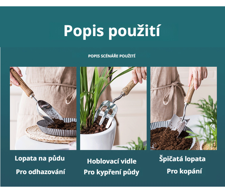 Tři kusy zahradního nářadí ideální pro každého zahrádkáře